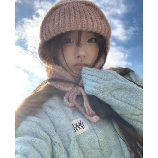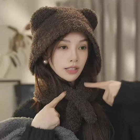 Bear Ribbed Plain / Fluffy Beanie Hat Ear