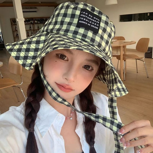 Chin Hat Checkered Strap With Cotton Bucket