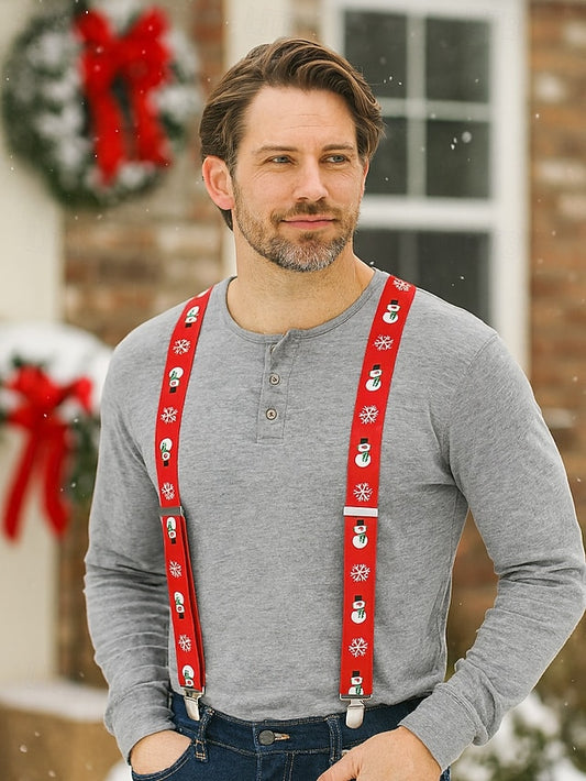 Christmas Men's Bow Plaid Tie Adjustable Set and Suspender