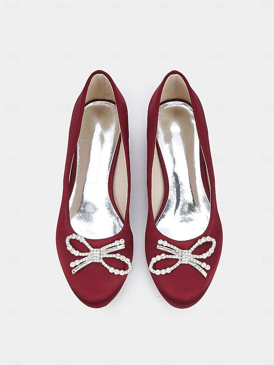 Embellished - Women's Rhinestone Flats Round-Toe Bow