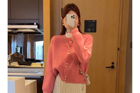 Faux Buttoned Pearl Plain Cardigan