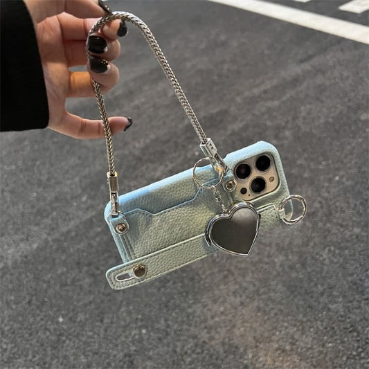 Faux Case Mirror Phone Heart Leather