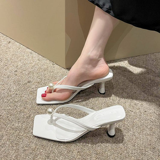 Floral Embroidered Pointy Stiletto Heel Slide Sandals