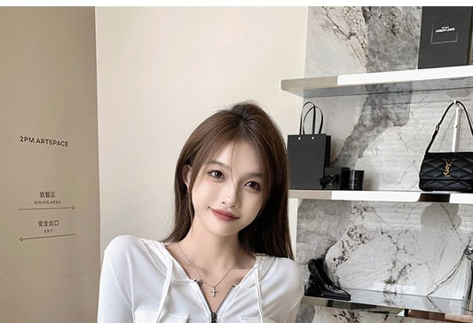 Hoodie Zip Shorts Set: Plain Short-Sleeve Waist Sweat Drawstring +
