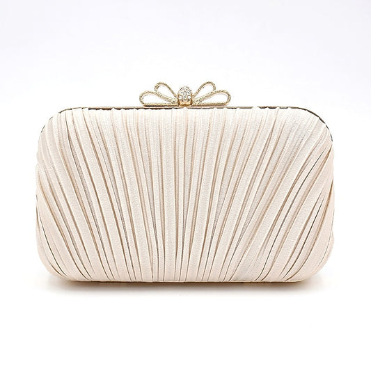 Rhinestone Women's Bag Bow White – Pleated Elegant Clutch
