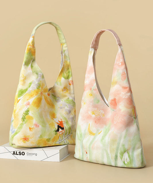 Tote Bag Retro Print Yellow Decorated Tassel Silk