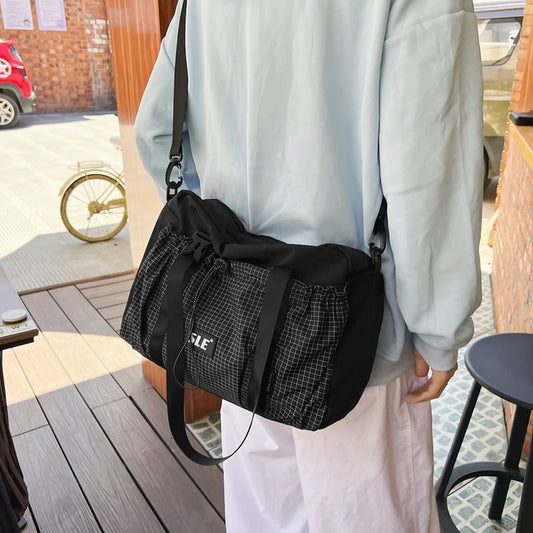 Sample Plaid Panel Drawstring Buckled Crossbody Bag
