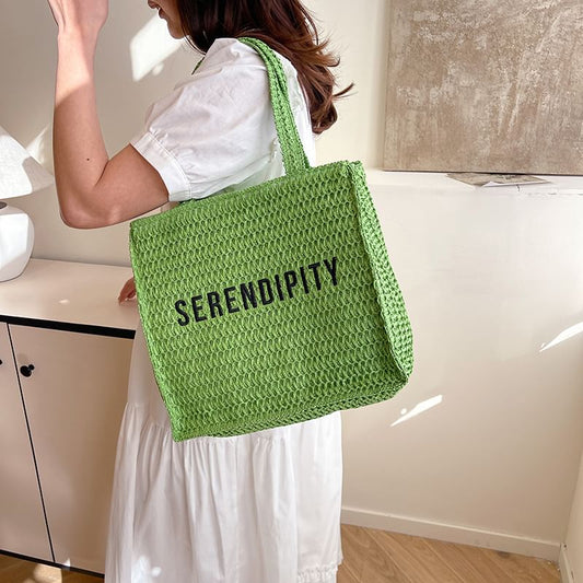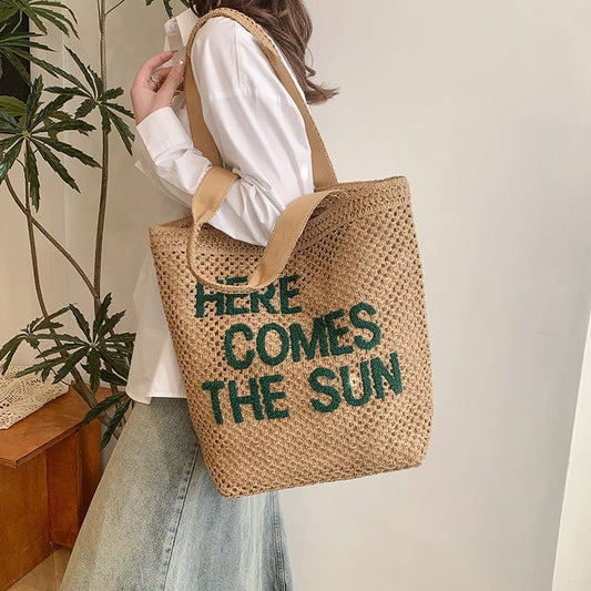 Sample Floral Embroidered Lace Bow Woven Tote Bag