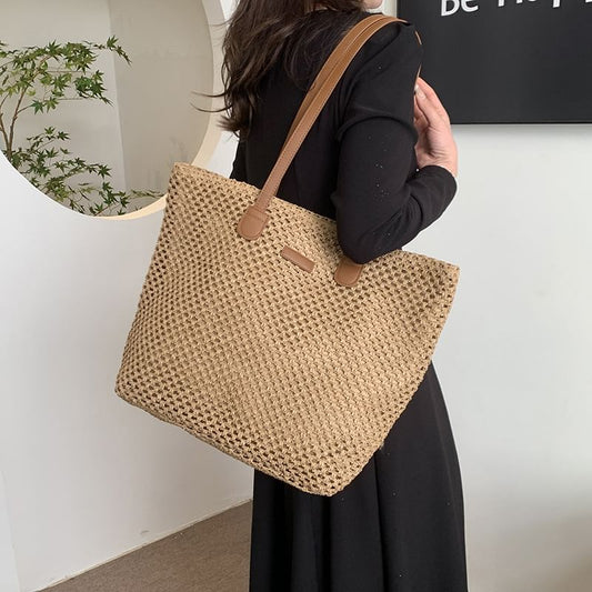 Sample Set: Faux Pearl Strap Drawstring Straw Crossbody Bag + Scarf