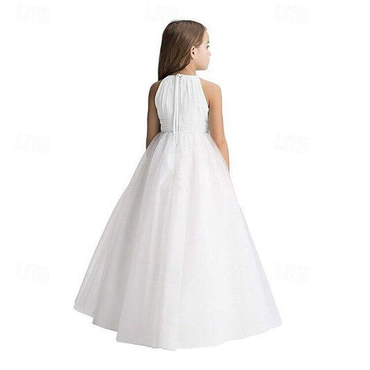 Dress Party Kids Sleeveless Color Performance Girls' Solid