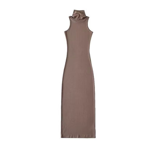 Sleeveless Turtleneck Plain Slim-Fit Dress