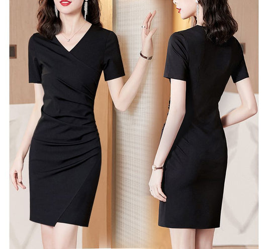 Short-Sleeve V-Neck Plain Wrap Mini Bodycon Dress