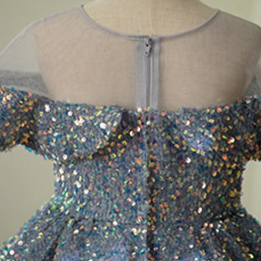 Wedding Short Sleeve Sequin Girls' Dress Toddler Party