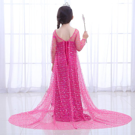 With Cape Hooded Dress Crown Elsa Cloak Princess Tulle Set