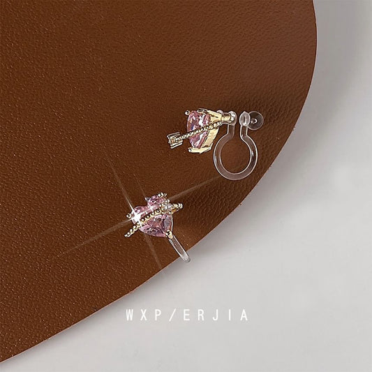 Bow Alloy Asymmetrical Rhinestone Drop Heart Shell Earring