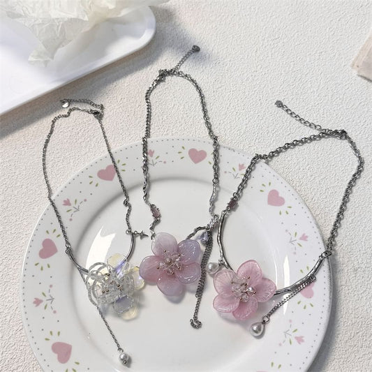 Flower Faux Pearl Stud Earring / Clip-On Earring