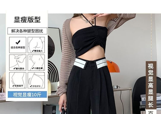 Wide High Waist Leg Pants Pleated Striped Suit