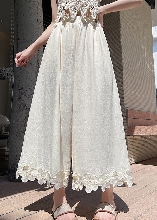 Boho Apricot Print Elastic Waist Cotton Wide Leg Pants Summer
