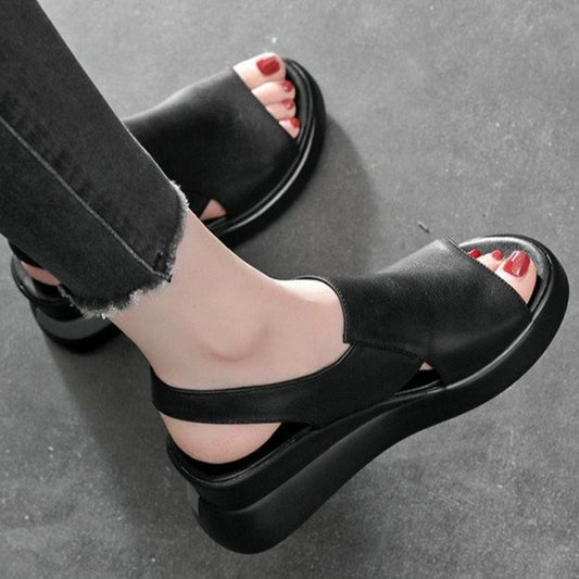 Sandals Plain Leather Wedge Heel Faux Slingback