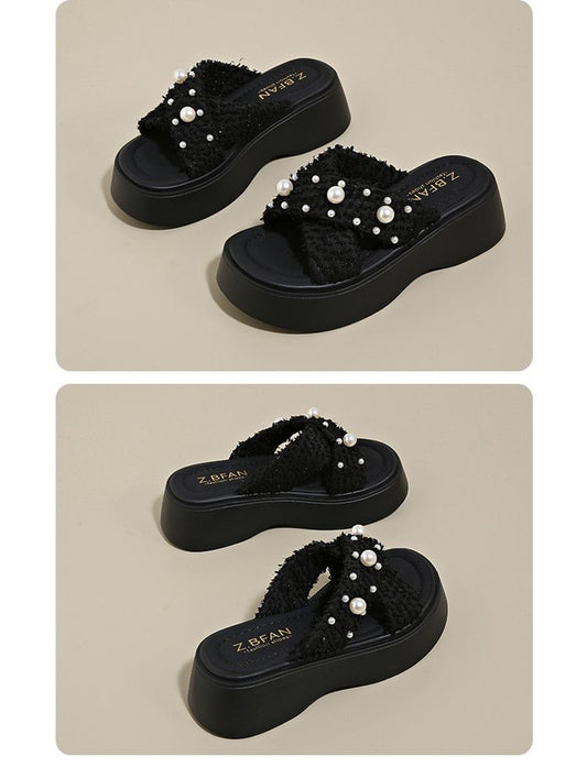 Wedge Toe Loop Sandals Platform Heel Rhinestone Slide