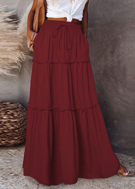 Skirt Tube / Waist Plain A-Line Ruffle Top Elastic Maxi Tiered