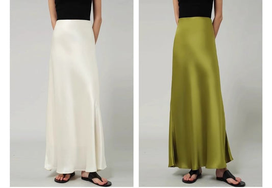 Plain Pencil Midi Satin Rise Slit Skirt High