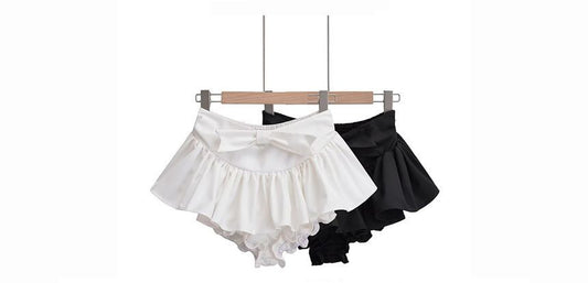 Elastic Waist Plain Bow Ruffle Mini A-Line Skirt
