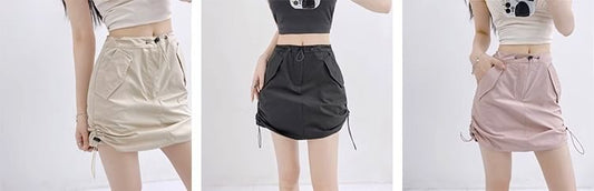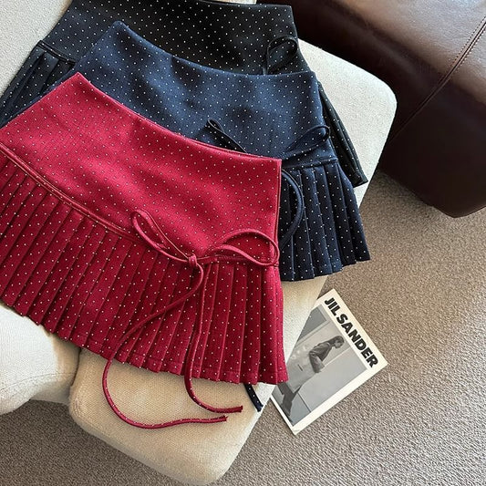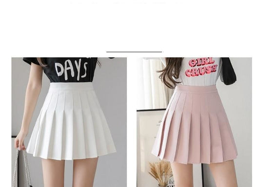 Skirt A-line Pleated Mini Undershorts Belt Plain Waist High / Set