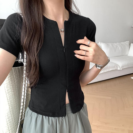 Short-Sleeve Mini Plain Dress A-Line Shirt