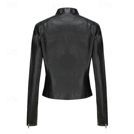 Faux Jacket Zipper Pocket Comfortable Women's Leather