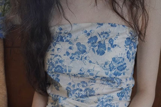 Solid Sleeve Shirt Blue Ruffled Puff Patchwork