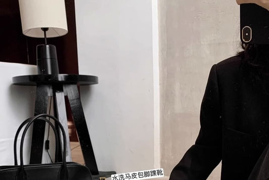 Genuine Leather Low-Heel Square Toe Short Boots