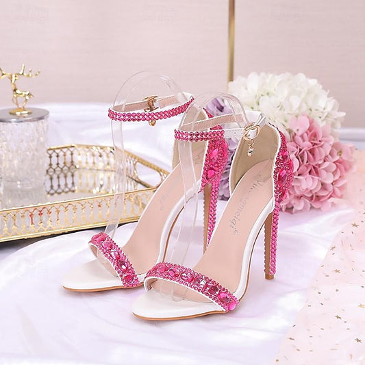 Stiletto Green Matching with Heels Rhinestone Ankle Women's