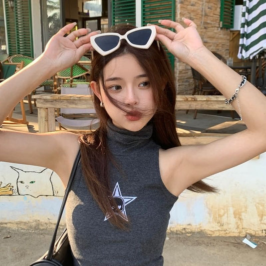 Großhandelsmuster Pullover Mock Neck Mini Rise Gepunktet / Kurz Geschnitten Plissee Hoch Gewaschen