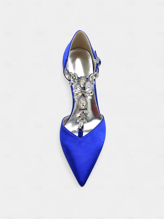 T-Strap Toe – Heels Pointed Women's Satin Blue Navy