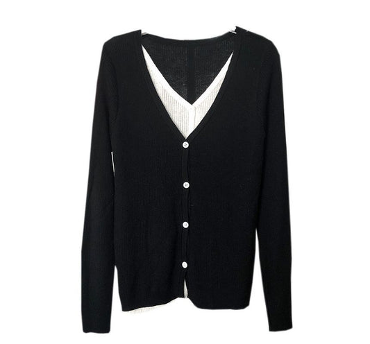 Tone Two Mock Long-Sleeve Two-Piece V-Neck Top Knit Button-Up