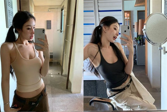 Top Neck Spaghetti Camisole Plain Scoop Strap