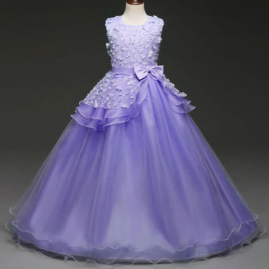 Girl Color Kids Party Solid Girls' Flower Dress Long