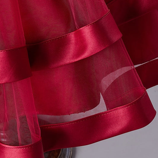 Kids Wedding Party Color Solid Sleeveless Girls' Mesh Dress