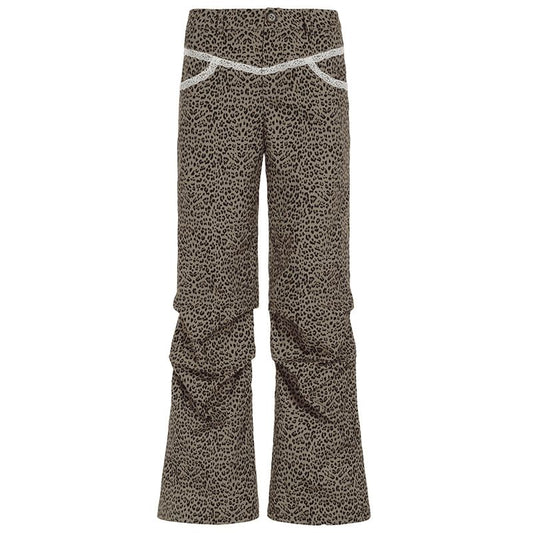 Pieces Fall Shirts Fashion Wide Peter Collar Pants Pan Leg Green Print Set And Two