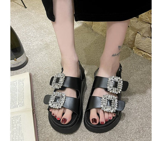 Rhinestone Slingback Platform Sandals