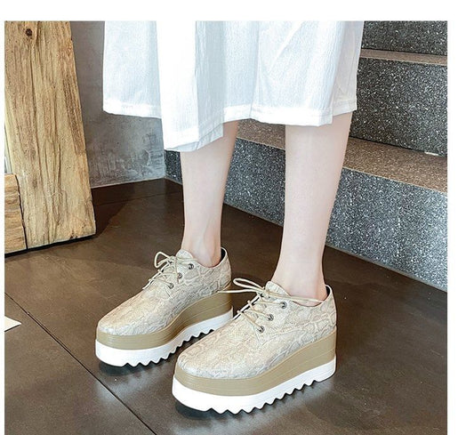 Print Lace-Up Leopard Shoes Platform