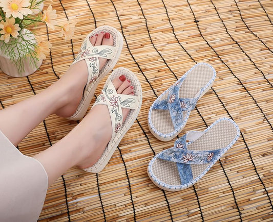 Embroidery Sandals Floral Cross Strap
