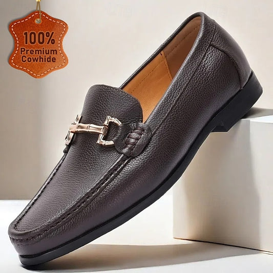 Men's Brown Snake Pattern Leather Slip-On Shoes with Metal