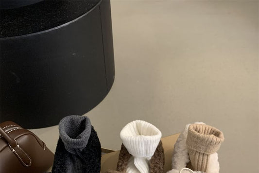 Sample Square Toe Bow Fleece Hidden Wedge Mary Jane Shoes