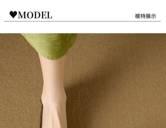 Pointed Toe Plain Faux Leather Mary Jane Shoes