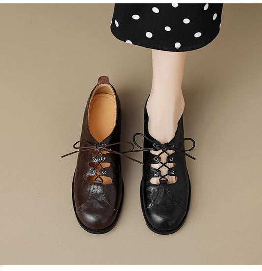 Lace-Up Cutout Faux Leather Oxford Shoes