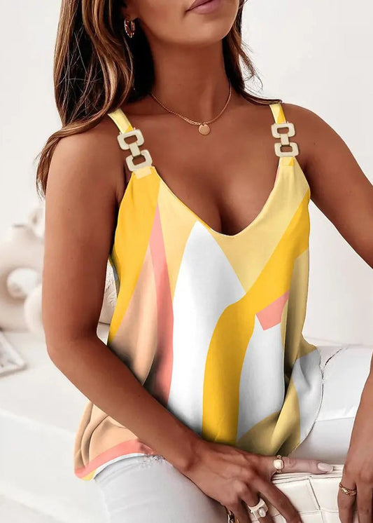 New Blue V Neck Striped Cotton Spaghetti Strap Tank Summer