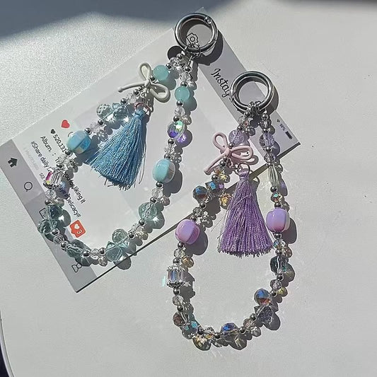 Pad Phone Bow Strap with Crystal Faux Lanyard