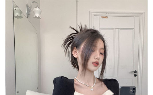 Slim-Fit Top Puff-Sleeve Square-Neck Knit